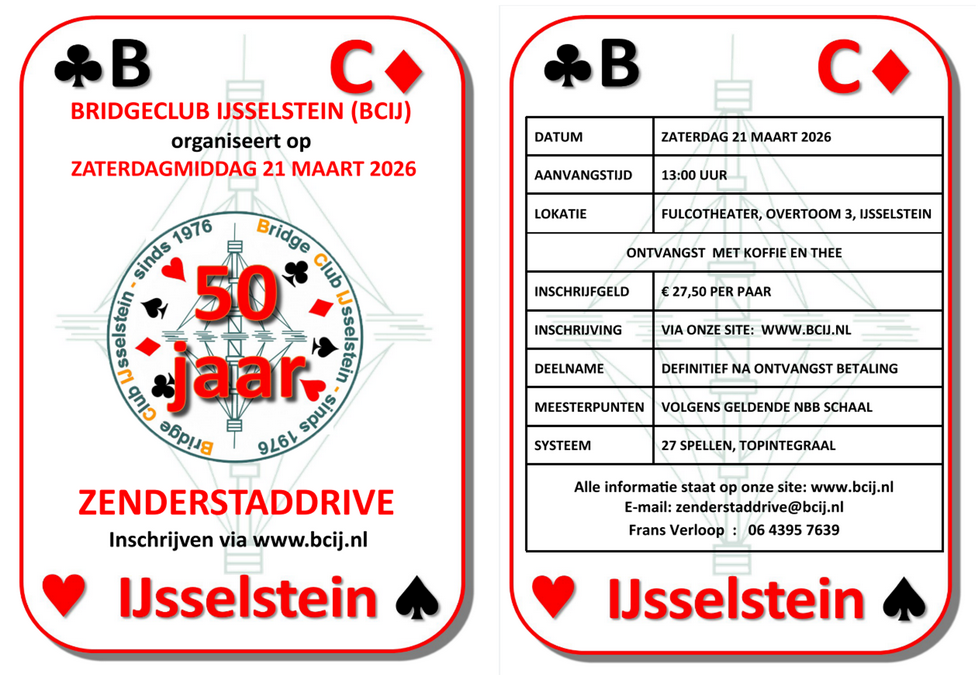 In verband met de weersomstandigheden gaat het bridgen deze week niet door. Ook de cursus...